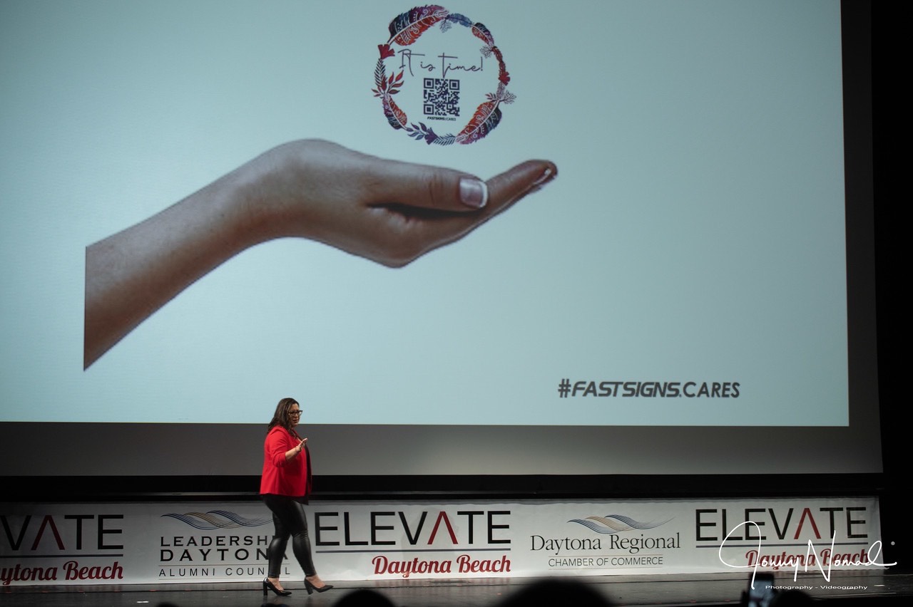 Carmen and her team make it a priority to select one big FASTSIGNS Cares project annually. For 2021, they rallied around the mission to raise awareness of Domestic Violence that affects women in their community. They work closely with The Beacon Center, the only certificated domestic violence shelter in Volusia County. They are also a dropoff facility for the nonprofit.