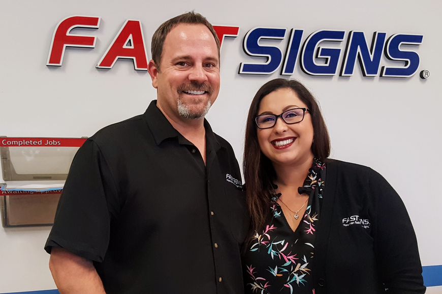 Carmen Ruiz has been in the sign industry as long as she can remember. When she graduated high school, she took a job at a local Miami sign shop in the design and output department. “The sign industry is really all I know. It was my first job and I fell in love,” says Carmen Ruiz, now co-owner and franchisee at FASTSIGNS® of Daytona Beach.