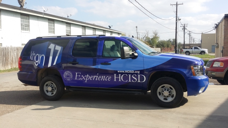 community, including a full wrap on a HCISD vehicle promoting their radio