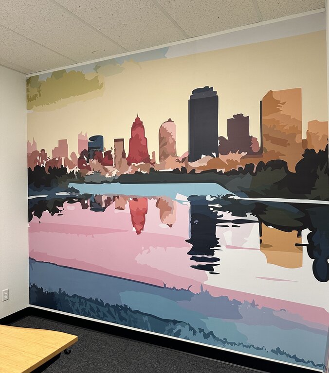 FASTSIGNS center in Austin used AI technology to create a cityscape wall mural